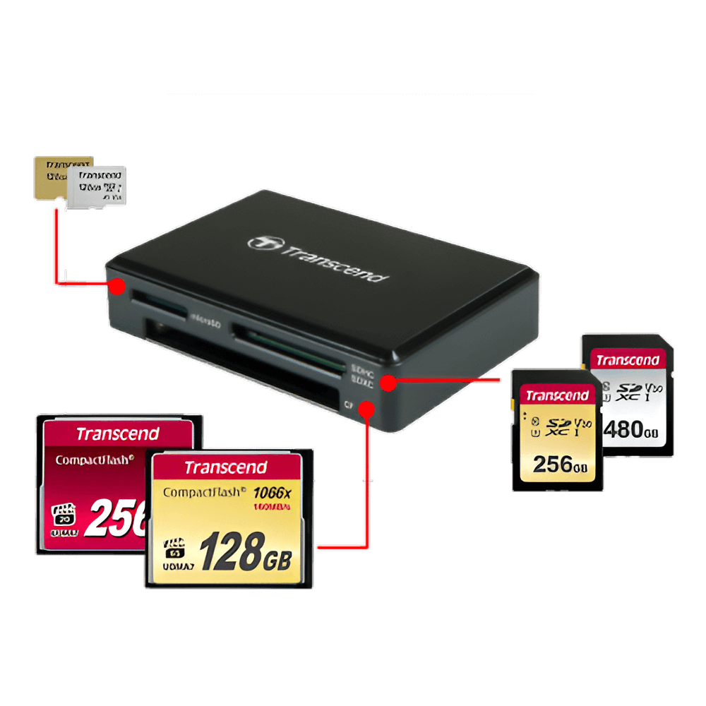 Liberte todo o potencial dos seus cartões de memória de alta velocidade com o leitor de cartão RDF8 da Transcend. Com suporte para cartões de memória SDXC/SDHC UHS-I, microSDXC/SDHC UHS-I e CompactFlash, o leitor de cartão RDF8 da Transcend combinado com o aumento de desempenho da tecnologia avançada USB 3.1 Gen 1 é a escolha profissional para transferência de dados rápida e eficiente.
